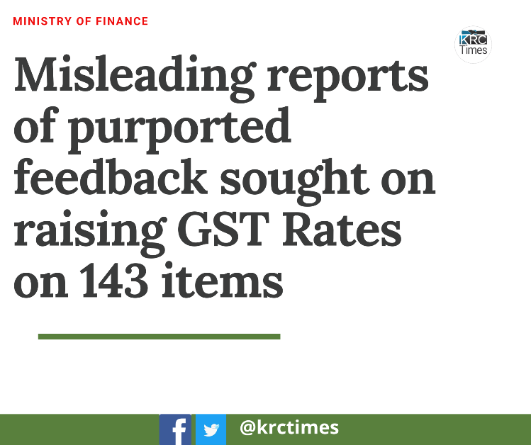Clarification | Misleading reports of purported feedback sought on raising GST Rates on 143 items April 26, 2022 KRC TIMES Desk