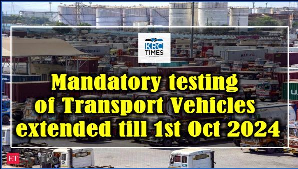 Mandatory testing of Transport Vehicles extended till 1st Oct 2024 September 21, 2023 KRC TIMES National Bureau