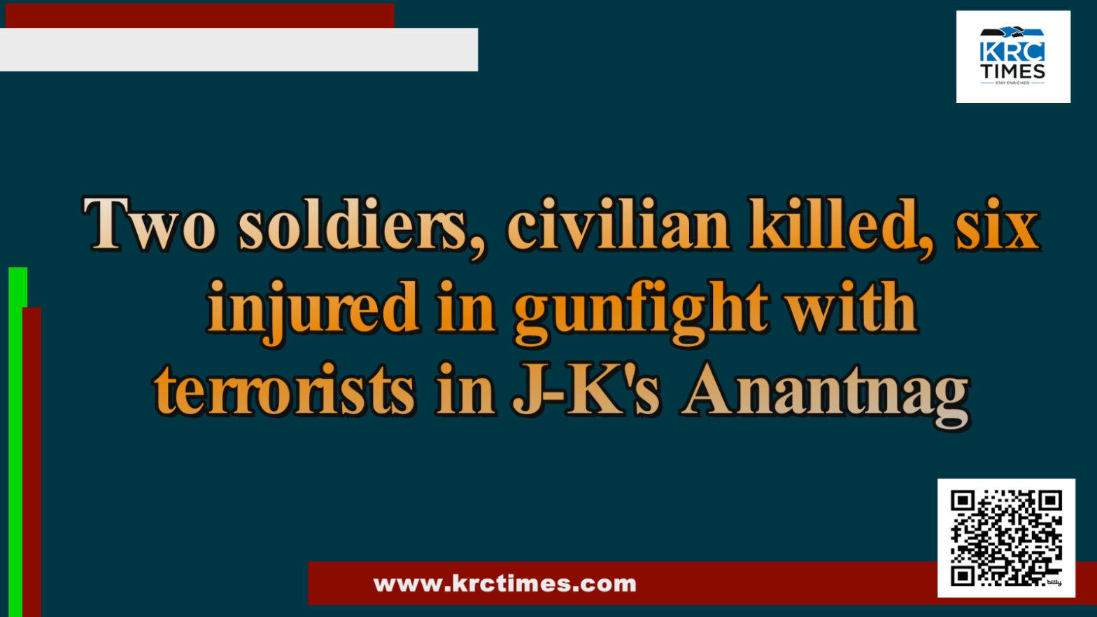 Two soldiers, civilian killed, six injured in gunfight with terrorists in J-K’s Anantnag August 11, 2024 KRC TIMES National Bureau