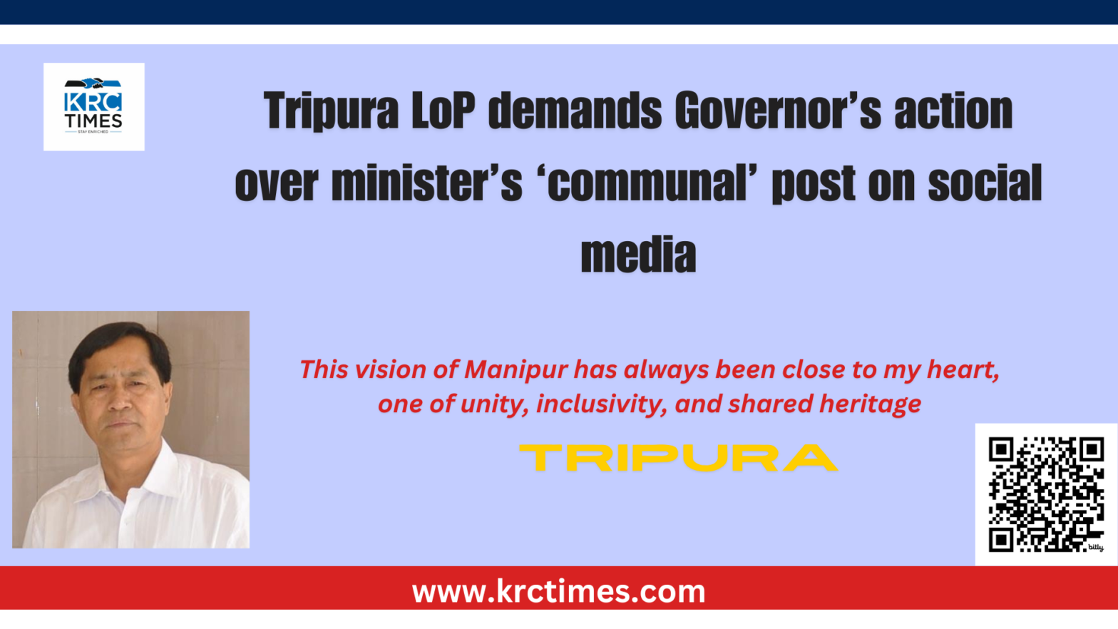 Tripura LoP demands Governor’s action over minister’s ‘communal’ post on social media March 19, 2025 KRC TIMES NE Desk