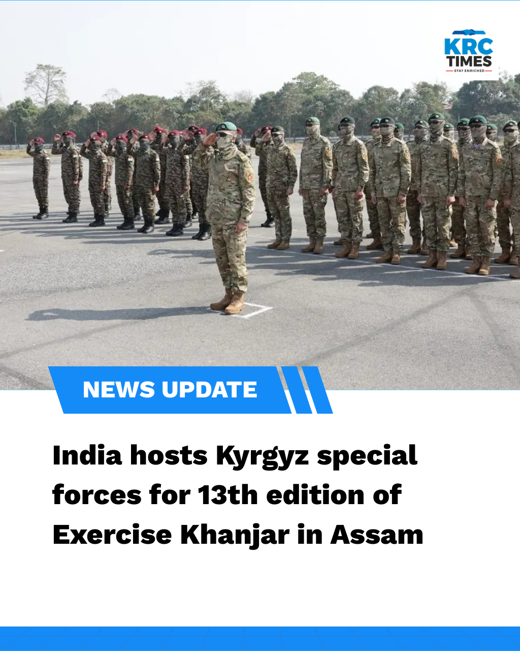 India hosts Kyrgyz special forces for 13th edition of Exercise Khanjar in Assam February 5, 2026 KRC TIMES National Bureau