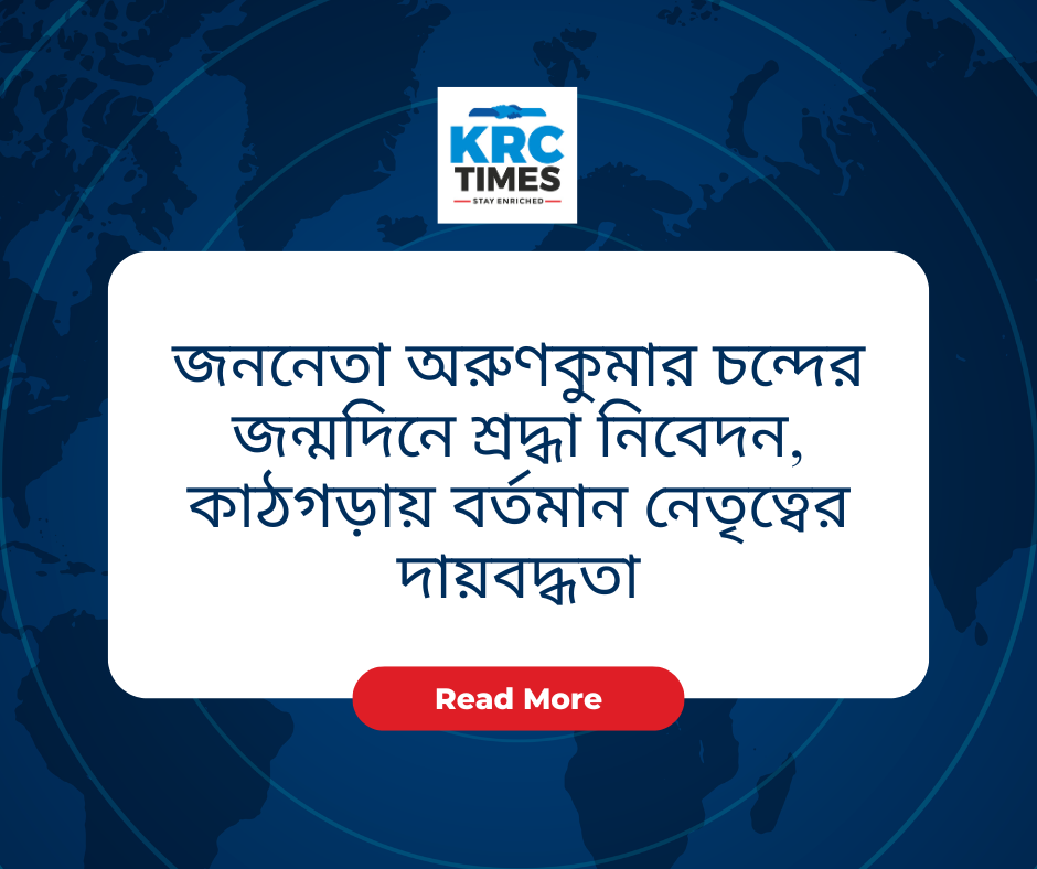 জননেতা অরুণকুমার চন্দের জন্মদিনে শ্রদ্ধা নিবেদন, কাঠগড়ায় বর্তমান নেতৃত্বের দায়বদ্ধতা ফেব্রুয়ারি ১৮, ২০২৬ কেআরসি টাইমস বারাক ভ্যালি ব্যুরো