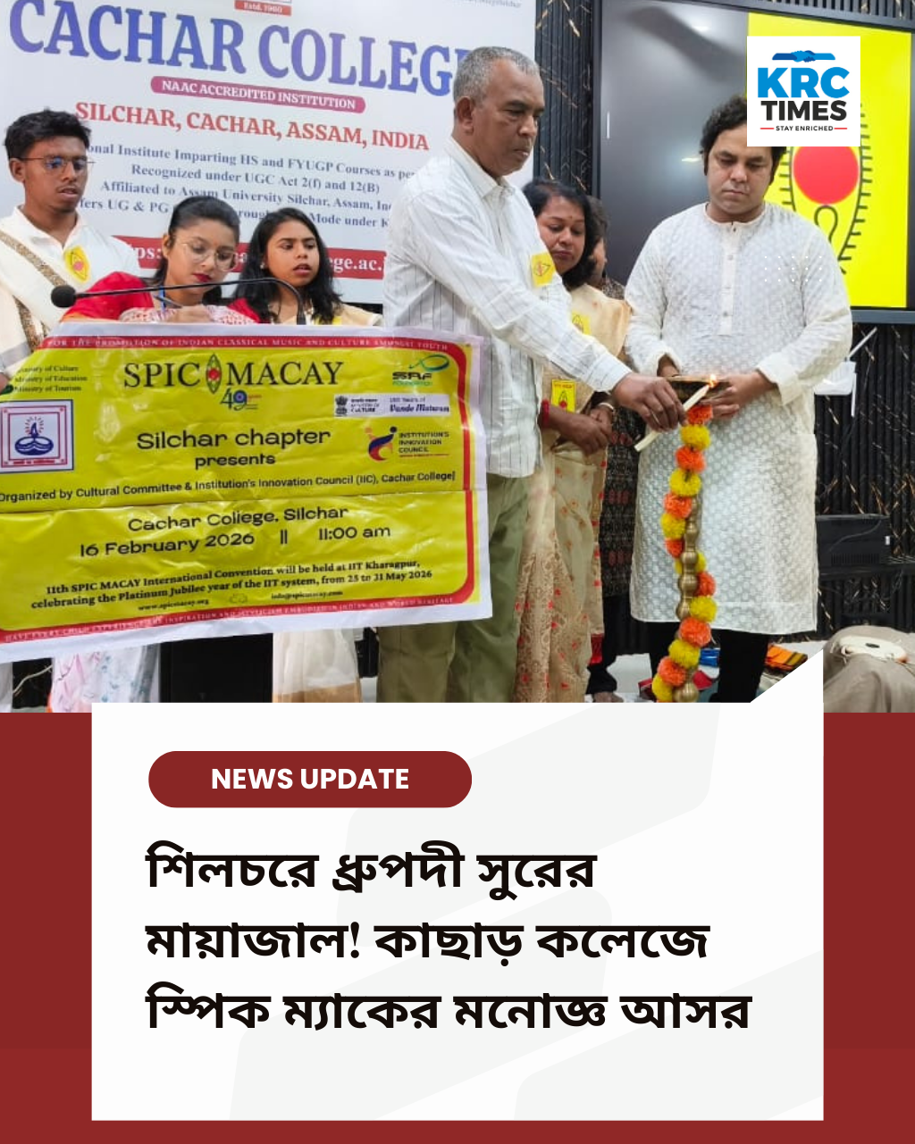 শিলচরে ধ্রুপদী সুরের মায়াজাল! কাছাড় কলেজে স্পিক ম্যাকের মনোজ্ঞ আসর ফেব্রুয়ারি ১৭, ২০২৬ কেআরসি টাইমস বারাক ভ্যালি ব্যুরো