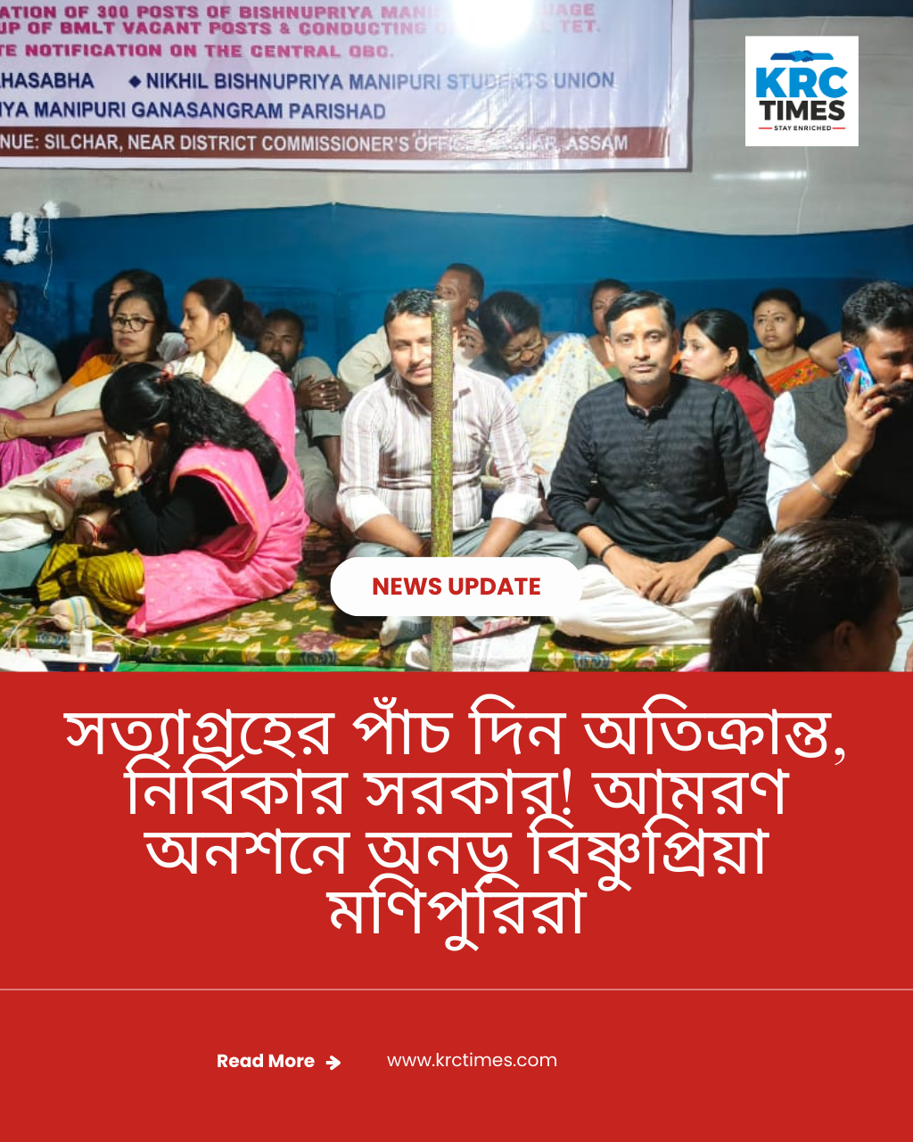 সত্যাগ্রহের পাঁচ দিন অতিক্রান্ত, নির্বিকার সরকার! আমরণ অনশনে অনড় বিষ্ণুপ্রিয়া মণিপুরিরা ফেব্রুয়ারি ১৭, ২০২৬ কেআরসি টাইমস বারাক ভ্যালি ব্যুরো