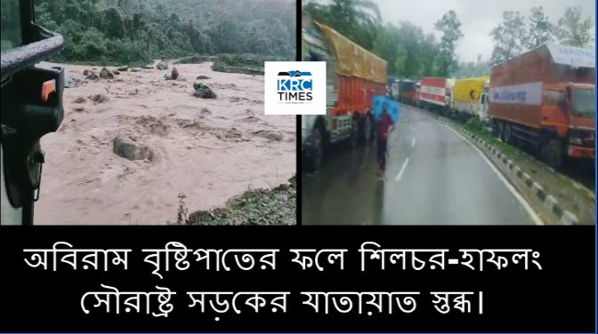 অবিরাম বৃষ্টিপাতের ফলে শিলচর-হাফলং সৌরাষ্ট্র সড়কের যাতায়াত স্তব্ধ। মে ৩১, ২০২৫ কেআরসি টাইমস বারাক ভ্যালি ব্যুরো