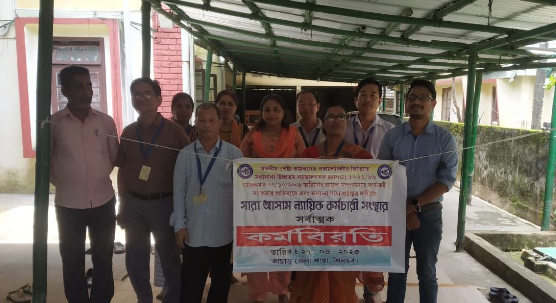 সারা আসাম ন্যায়িক কর্মচারী সংস্থার বিভিন্ন দাবিতে কর্মবিরতি কার্যসূচি পালন করা হয় শিলচরে পারিবারিক আদালতে জুন ২৭, ২০২৩ কেআরসি টাইমস বারাক ভ্যালি ব্যুরো
