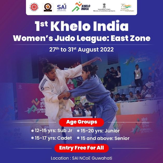 প্রথম খেলো ইন্ডিয়া মহিলাদের জুডো প্রতিযোগিতা ২০২২-এর ২৭ অগাস্ট থেকে শুরু হবে গুয়াহাটির সাই কেন্দ্রে আগস্ট ২৬, ২০২২ কে আর সি টাইমস ডেস্ক
