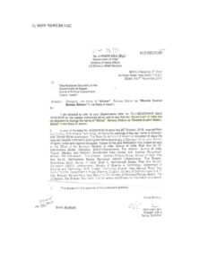 A copy of the letter No.SM/23/05/2015 dated the 20″ October. 2016 received from the Ministry of Science & Technology intimating the spellings of the new name in Devnagri and Roman Script is enclosed. The State Government of Assam is requested to issue the required Gazette notification spelling the name accordingly in Devnagri (Hindi) and Roman (English) script and regional language. Copies of the said Notification may please be sent to the Office of the Survere General of India, Survey of India, Post Box No 37 Hathbarkaia Estate.