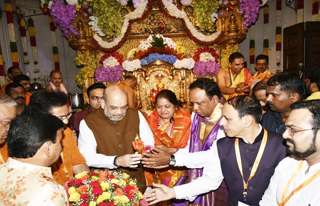 এর আগে এদিন মহারাষ্ট্রের রাজ্য বিজেপি সভাপতি মঙ্গল প্রভাত লোধার নেতৃত্বে মুম্বইয়ের ছত্রপতি শিবাজি আন্তর্জাতিক বিমানবন্দরে মুম্বইয়ের সমস্ত সাংসদ, রাজ্য সরকারের সমস্ত মন্ত্রীদের নিয়ে অমিত শাহকে স্বাগত জানানো হয়। বিমানবন্দর থেকে সরকারি অতিথিশালায় কিছুক্ষণ বিশ্রম নিয়ে গণেশ পুজো দিতে মুম্বইয়ের বিখ্যাত সিদ্ধিবিনায়ক মন্দিরে পুজো দিতে যান। গণেশ চতুর্থী উপলক্ষ্যে দেশবাসীকে অভিনন্দন জানিয়ে অমিত শাহ ট্যুইটারে লেখেন যে গণেশ চতুর্থী উপলক্ষ্যে সকল দেশবাসীকে শুভেচ্ছা জানাই। এমন সময় অমিত শাহ মহারাষ্ট্র সফরে গিয়েছেন যখন রাজ্যজুড়ে বিধানসভা নির্বাচনের প্রস্তুতি চলছে। নির্বাচনের দিনক্ষণ ঠিক না হলেও এখনই নির্বাচনী প্রচার চালানোর প্রস্তুতি নিতে শুরু করেছে।