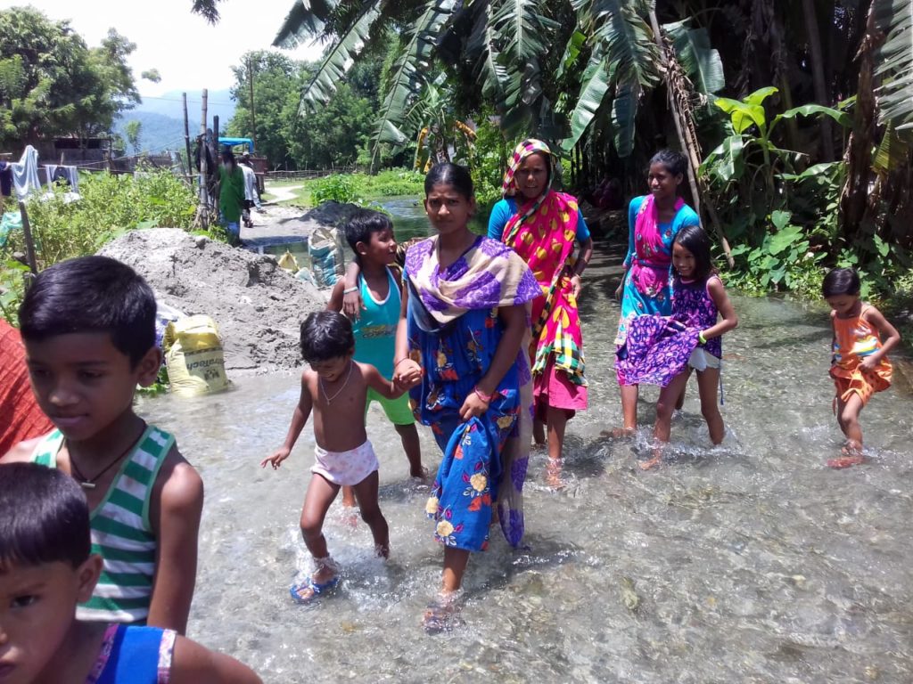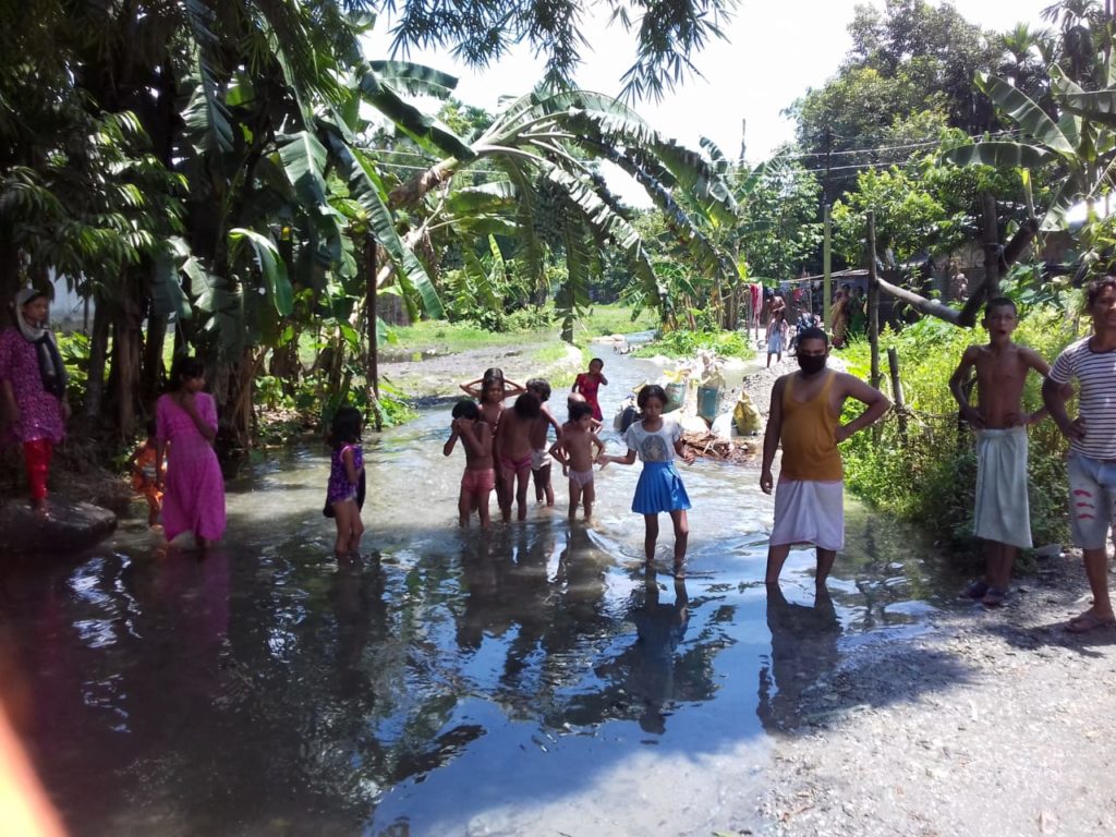 পাশাপাশি এই নদীটি গ্রামের দিকে চলে আসছে বলে দাবি গ্রামের মানুষের। বর্ষার আগে গ্রামের মানুষেরাই মাটি ফেলে একটি রাস্তা তৈরি করেছিল কিন্তু এখন আর সেই রাস্তা নেই।ছোট্ট এই নদীর জল প্রবাহে তা ধুয়ে গিয়েছে। এদিন নিজেরাই বালির বস্তা দিয়ে রাস্তা তৈরি করতে দেখা যায়। আর এতে গ্রামের যুবকদের সাথে হাত লাগিয়েছে গ্রামের মহিলারও। গ্রামে যেমন রাস্তা নেই তেমন রাস্তাঘাটে আলোর ব্যবস্থাও নেই।পঞ্চায়েতের তরফে কিছু মেলেনা এই এলাকায়।
