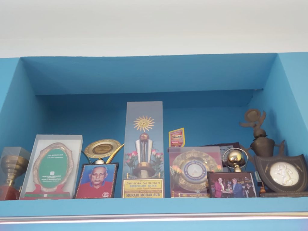 শ্যামনগর স্টেশনে নেমে টোটো চালককে মুরারি শূরের নাম বলতেই তিনি বললেন. আপনি কি সাংবাদিক? ঘাড় নাড়াতেই কপালে জোড়া হাত ঠেকিয়ে বললেন, ‘নমস্য মানুষ। জানেন আমিও একদিন মুরারি স্যারের ছাত্র ছিলাম। ময়দানে প্রথম ডিভিশন খেলেছি। এই এলাকার কতো ছেলেকে যে স্যার ফুটবল শিখিয়েছেন গুণে শেষ করা যাবে না।’ স্বাভাবিক ভাবেই আমাকে ঠিকানা বলতে হয়নি। দশ মিনিটের পথ শেষে টোটো থামল মুরারিবাবুর বাড়ির সামনে, টোটো চালক যাত্রা পথের পুরো সময়টাই তাঁর এক সময়কার কোচের কথা বলে গেলেন। সটান বাড়ির ভেতরে প্রবেশ করে নিজের প্রাক্তন কোচের পায়ে হাত দিয়ে প্রণাম করে আমকে বসিয়ে দিয়ে তারপর বিদায় নিলেন। আমার সামনে তখন বসে আছেন একজন আশি ছুঁই ছুঁই অশক্ত বৃদ্ধ। বযেসের ভারে নুব্জ। পরিচয় পর্ব সারার পর শুরু হল আলাপচারিতা। কয়েক বছর আগে সেরিব্রাল অ্যাটাক হওয়ার পর থেকে কথা জড়িয়ে যায়। একদিক অসাড় হয়ে গিয়েছিল। নিজেই রীতিমত এক্সারসাইজ করে কিছুটা হলেও চলাফেরার ক্ষমতা ফিরে পেয়েছেন।