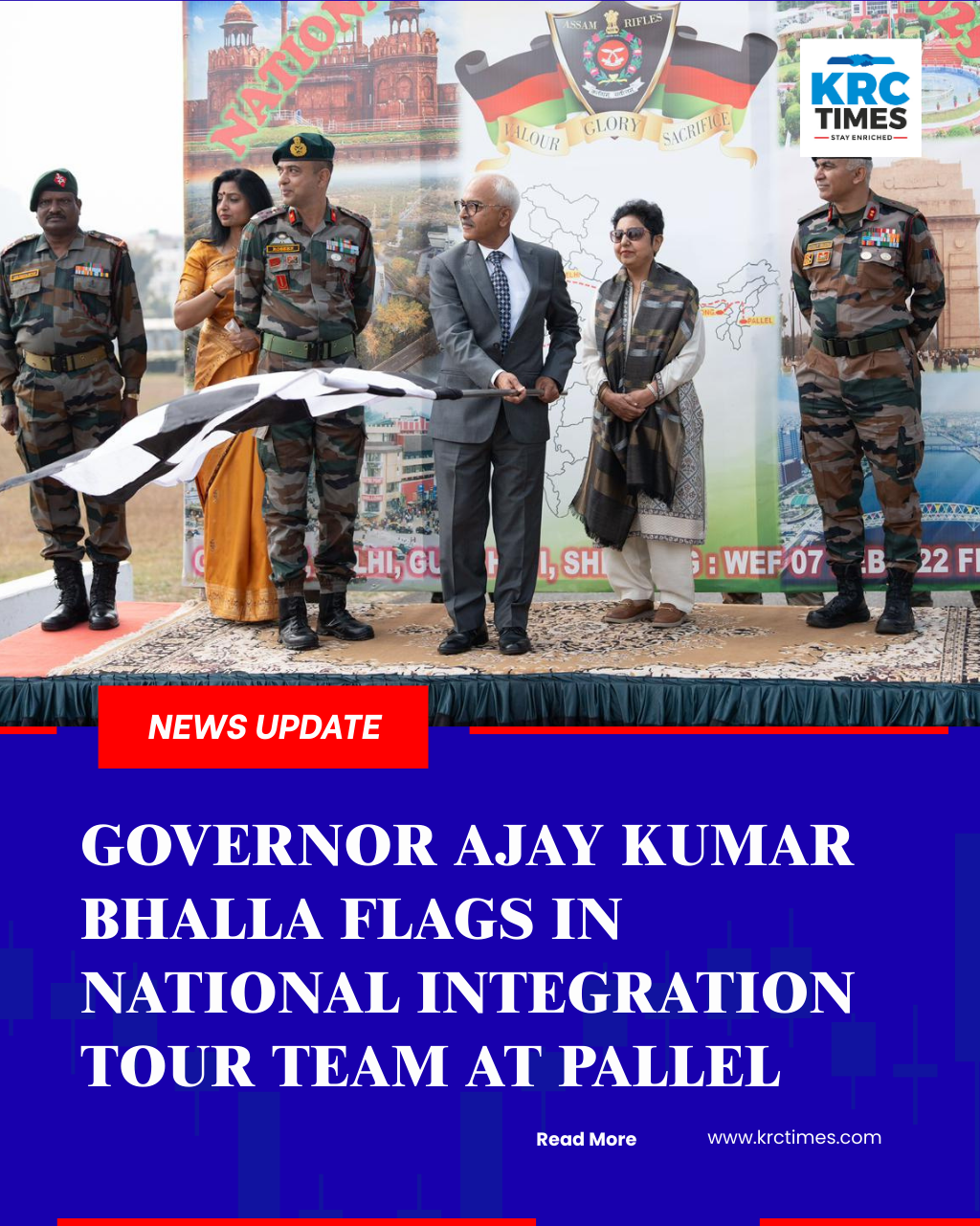 Governor Ajay Kumar Bhalla Flags in National Integration Tour Team at Pallel February 23, 2026 KRC TIMES Manipur Bureau