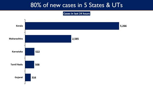 At a time when almost all States/Union Territories are showing a declining trend in the number of cases and deaths due to COVID-19, Kerala and Maharashtra continue to report a large number of cases. At present, these two States alone are contributing to almost 70% active COVID-19 cases in the country.