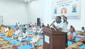 In his address, Vice Chancellor Dr. Bharat Mishra explained the importance of yoga and invoked the basic mantra of “walk together, grow together”. Remembering Bharat Ratna Rashtra Rishi Nanaji Deshmukh ji, he talked about realising his vision of a healthy Chitrakoot through yoga.