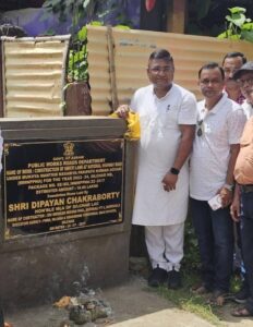 Silchar: In a significant push towards local infrastructure development, Silchar MLA Dipayan Chakraborty on Thursday laid the foundation stones for two vital road construction projects under the Public Works Department (PWD), aimed at improving connectivity and civic amenities in the city.