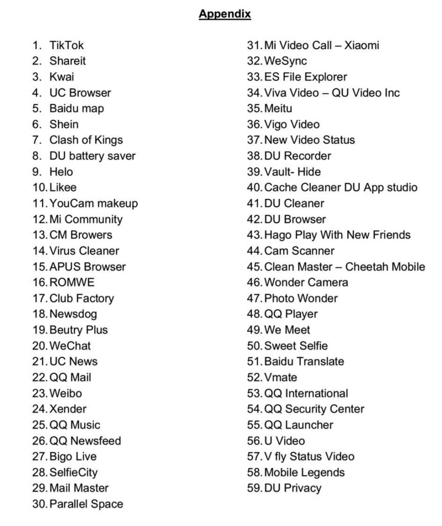 On the basis of these and upon receiving of recent credible inputs that such Apps pose threat to sovereignty and integrity of India, the Government of India has decided to disallow the usage of certain Apps, used in both mobile and non-mobile Internet-enabled devices. These apps are listed in the attached appendix.