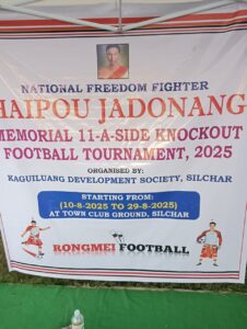 Silchar: The Haipou Jadonang Memorial 11-a-side Knockout Football Tournament 2025, organised by the Kaguiluang Development Society, came to a close on Friday at the Town Club Ground in Silchar. The tournament, held from August 10 to 29, was dedicated to the memory of national freedom fighter Haipou Jadonang.