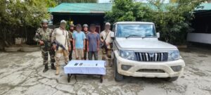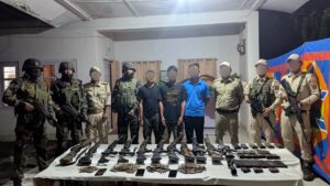 Three active cadres of the Kangleipak Communist Party (People’s War Group) were also apprehended. The team also recovered four INSAS rifles, four SLRs, two .303 rifles, one AR-15/M-16 rifle, a scope, 82 rounds of live ammunition, 25 magazines, and three mobile phones.
