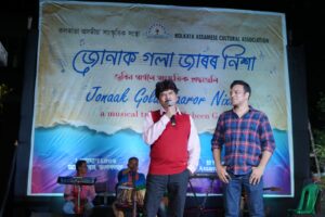 In the concluding segment of the evening, conducted by the Association’s Vice President Anuj Gogoi, the audience stood together in an emotional moment as they sang “Mayabini Raatir Bukut,” accompanied by Abhi Kashyap on flute and Imon Borah on piano.