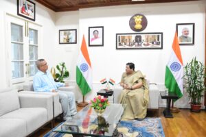 Akhilesh Prasad Singh, newly appointed IG, CRPF, Manipur and Nagaland Sector met Governor of Manipur Anusuiya Uikey at Raj Bhavan on Thursday. The IG, while informing the Governor that he has newly joined as IG, CRPF, M & N Sector, said he is already well aware of the current crisis arising out of the ethnic clash.