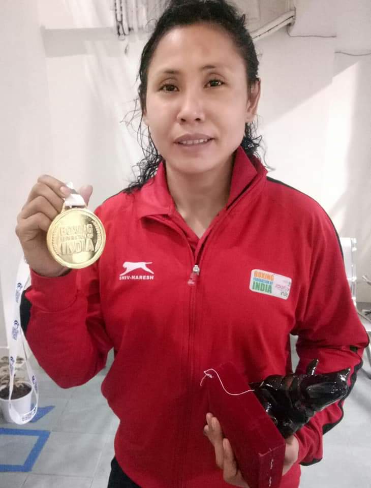 World championship medallist Sarita Devi won her first gold in three years beating Simranjit Kaur 3-2 by virtue of a split decision. Making her debut in 60kg category, Simranjit, a World Championship bronze medallist and Asian Championship silver medallist, impressed in the first round with some telling blows initially, but Sarita Devi did not lose ground and fought back with a counter-attacking display as she celebrated the win looking upwards, dedicating the gold to her mother Laishram Khomthonbi, who passed away last year. She said to have lost her father early and her mother had made her a boxer. She got emotional while she spoke about her mother who lost her battle to cancer.