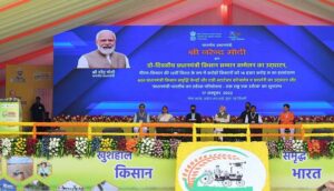 Prime Minister Narendra Modi inaugurated the PM Kisan Samman Sammelan 2022 at Indian Agricultural Research Institute in New Delhi today. The Prime Minister also inaugurated 600 Pradhan Mantri Kisan Samruddhi Kendras (PMKSK) under the Ministry of Chemicals & Fertilisers. Furthermore, the Prime Minister also launched Pradhan Mantri Bhartiya Jan Urvarak Pariyojana – One Nation One Fertiliser. During the event, the Prime Minister also released the 12th installment amount of Rs. 16,000 crores under the Pradhan Mantri Kisan Samman Nidhi (PM-KISAN) through Direct Benefit Transfer. The Prime Minister also inaugurated the Agri Startup Conclave and Exhibition. During the event, the PM also launched ‘Indian Edge’, an e-magazine on fertiliser. Shri Modi took a walkthrough of the Theme Pavilion of the Startup Exhibition and inspected the products on display.