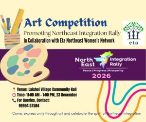 Laishoi Village: An art competition promoting the Northeast Integration Rally was held on December 23 at the Laishoi Village Community Hall, in collaboration with the Eta Northeast Women’s Network. The event witnessed enthusiastic participation from 45 children, including 25 children from the Laishoi Water Complex Relief Camp.