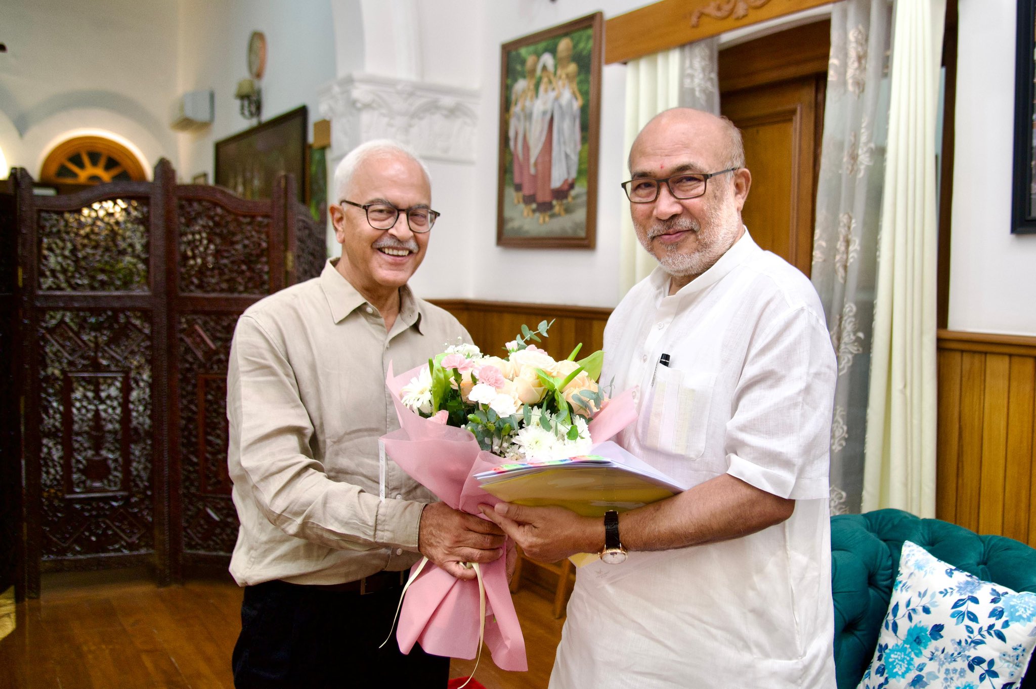 In a post on Facebook, he said: “Held a brief meeting with Additional Chief Secretary, Deputy Commissioner Imphal West & East, Directorate Relief and Disaster Management to review the flood situation, and strategising for immediate action on relief, search and rescue operations.”
