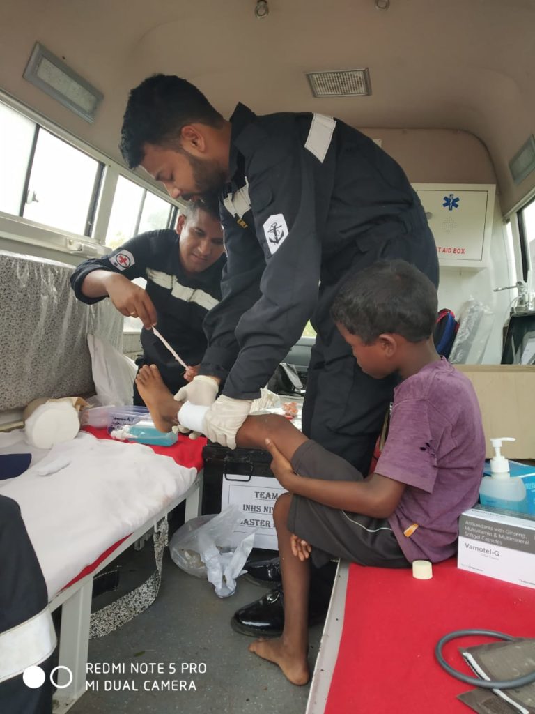 In order to render medical assistance, Naval Medical Teams have set up Medical Camps at four locations near Chattraged and Jankia villages in Odisha. About 150 personnel have been provided medical assistance and medicines were distributed to those in need.