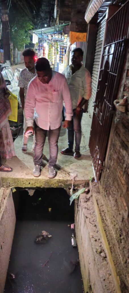 Joined by party karyakartas, the MLA interacted with locals and inspected the affected areas. He assured that steps would be taken to address the issue and strengthen the drainage system to avoid such situations in the future.