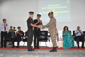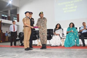 During the visit, the General Officer felicitated six young officers of the Army, alumni of Sainik School. GOC also felicitated four cadets, including two girl cadets, Cadet Amom Ratneshwor Singh, Cdt Duke Rajkumar, Cdt Priya Molsom and Cdt KV Gouri Keerthi, for successfully completing the Mount Everest Base Camp trek. He also conferred ranks upon newly appointed Cadet Appointments during the Investiture Ceremony.