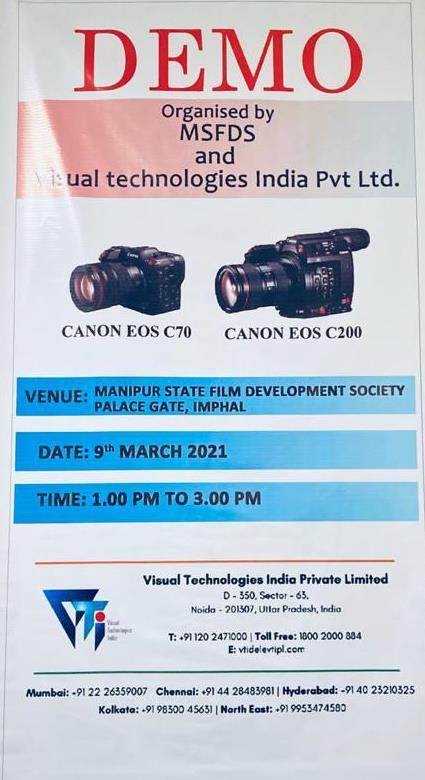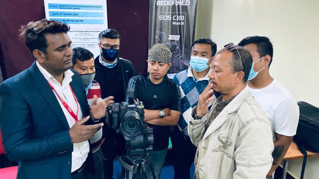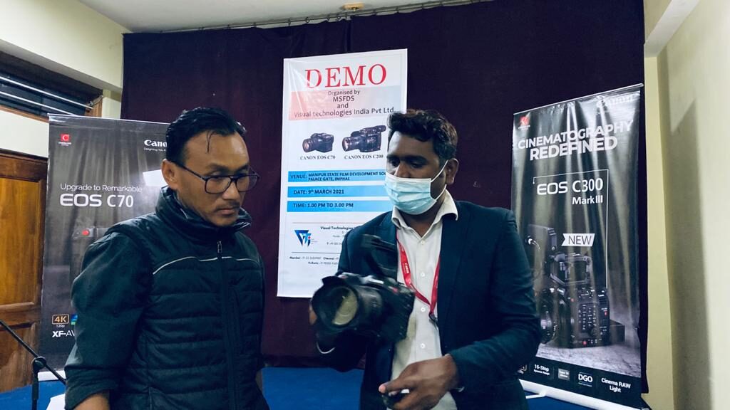 In an effort to rediscover cinema and take it to the next level, Manipur State Film Development Society (MSFDS) organised a knowledge update interaction on the latest Canon EOS C70 and C200 Mark: III. The two cameras are described as Cinematography redefined. The representative of Canon interacted with members of Cinematography Guild Manipur and All Manipur video Filmmaker’s and Producers Association and Television & Cine Foundation, Manipur, comprising 22 film technicians – cinematographers, photographers, filmmakers and film students.