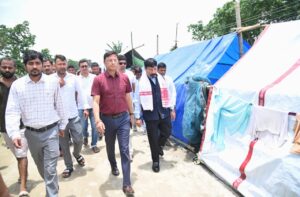 He also visited some relief camps and interacted with the families taking shelter there after directing the district administration to ensure the timely supply of essential items in the relief camps. Earlier, Union Minister Sarbananda Sonowal also assessed the flood situation in Dibrugarh and Tinsukia districts and assured the people that both the governments in New Delhi and Dispur are looking for a permanent solution to the region’s recurring flood problem.