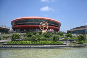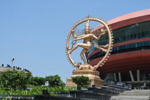 The #Nataraja statue made of Ashtadhatu is installed at the Bharat Mandapam. The 27 feet tall, 18-ton-weight statue is the tallest statue made of Ashtadhatu and is sculpted by the renowned sculptor Radhakrishnan Sthapaty of Swami Malai in Tamil Nadu and his team in a record 7 months.