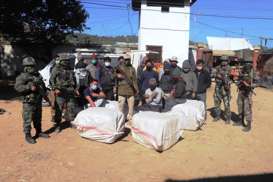 In the operation undertaken, Assam Rifles intercepted a convoy of 17 vehicles carrying a large consignment of smuggled cigarettes, liquor, clothes and shoes at Monsang Pantha Village. 22 individuals were apprehended in the operation.