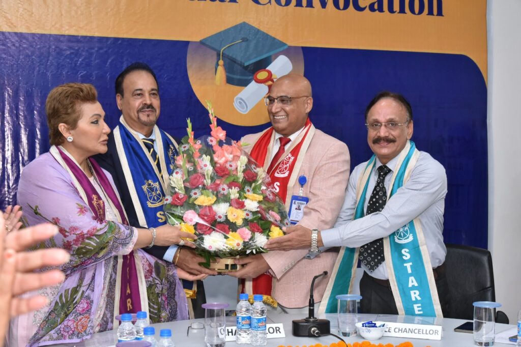 The first virtual Convocation of Starex University Gurugram was held here today. Dr. (Mrs.) Pankaj Mittal, Secretary General Association of Indian Universities, New Delhi delivered the Convocation Address as the Chief Guest and was presided over by Vice-Chancellor Starex University Professor M.M. Goel.