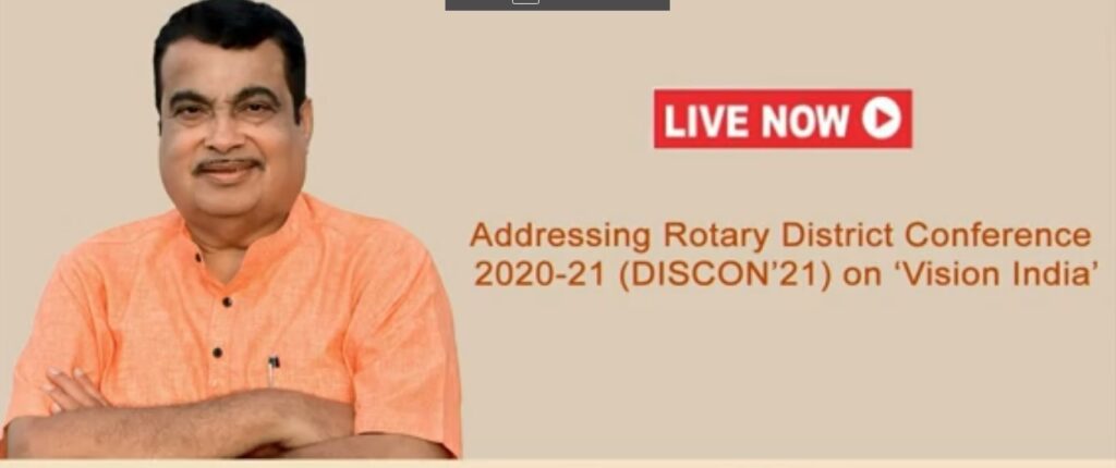 The Minister for Road Transport & Highways and Micro, Small and Medium Enterprises, Nitin Gadkari said that the sentiment behind creating an ‘Aatmanirbhar Bharat’ is to increase our exports and to find out Indian option for whatever we are importing. Addressing Rotary District Conference 2020-21 (DISCON’21) on ‘Vision India’, Gadkari said that under the leadership of Hon’ble Prime Minister Narendra Modi ji, the government has set a vision for India to become a five trillion dollar economy in the next five years. The Minister said that with the philosophy of ‘Sabka Saath, Sabka Vikas’ and proactive initiatives, the Government is aiming to boost investment, economic growth and generate more employment. Shri Gadkari said that with a flexible and all-inclusive time-bound decision-making process, a transparent and development-led ecosystem would contribute towards happy, prosperous, strong, and Aatmanirbhar Bharat.
