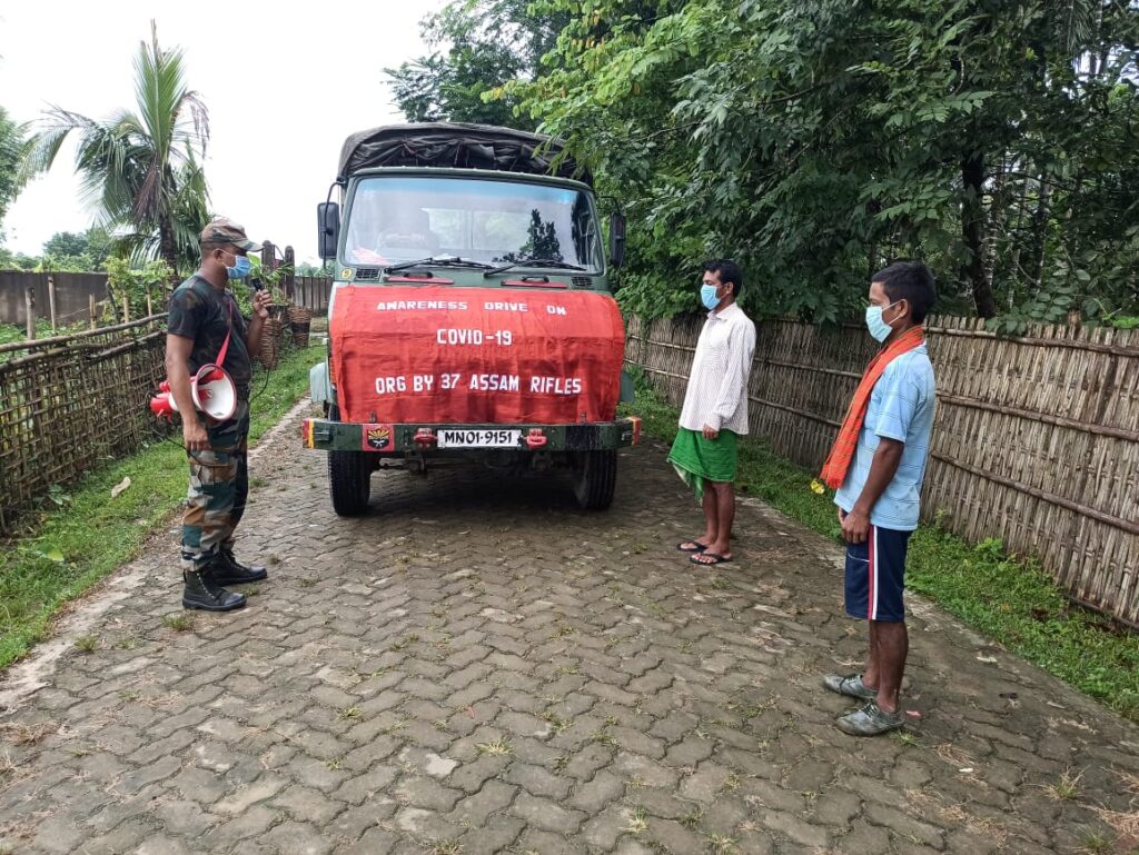 The Kadamtala Bn of Assam Rifles, under the aegis of HQ 21 Sector Assam Rifles and Inspector General Assam Rifles (East) in conjunction with the Civil Administration conducted an Awareness Drive on COVID-19 precautions & Govt of India guidelines in Alubhja and Lakhichara villages of Cachar District on 25 Sept 20