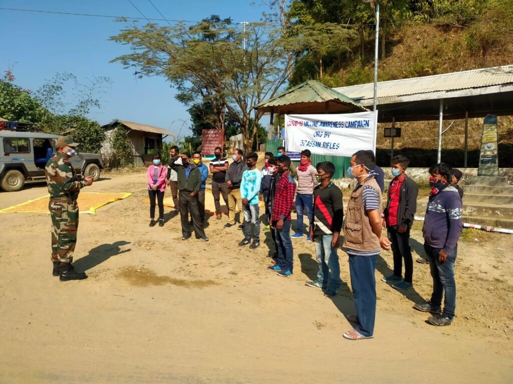 The Kadamtala Battalion of Assam Rifles under the aegis of Headquarters 21 Sector Assam Rifles and Inspector General Assam Rifles (East) organised a COVID – 19 Vaccine Awareness Campaign at New Khaphundai, Tamenglong District on Thursday.