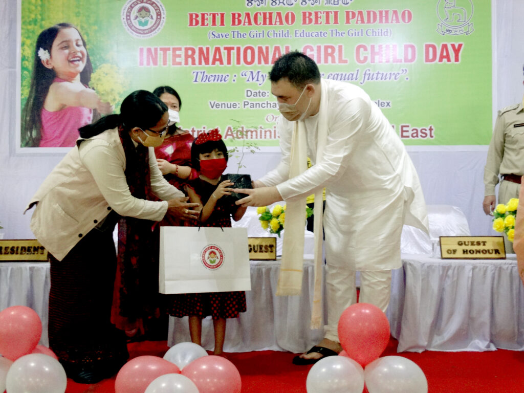 Minister for Social Welfare Okram Henry called upon the people of the State to join hands to eliminate and eradicate all forms of discrimination against girl child in the State. This was stated by him at the function organised by District Administration, Imphal East under International Day for Girl Child and Beti Bachao Beti Bachao campaign held at DC Complex, Imphal East today.