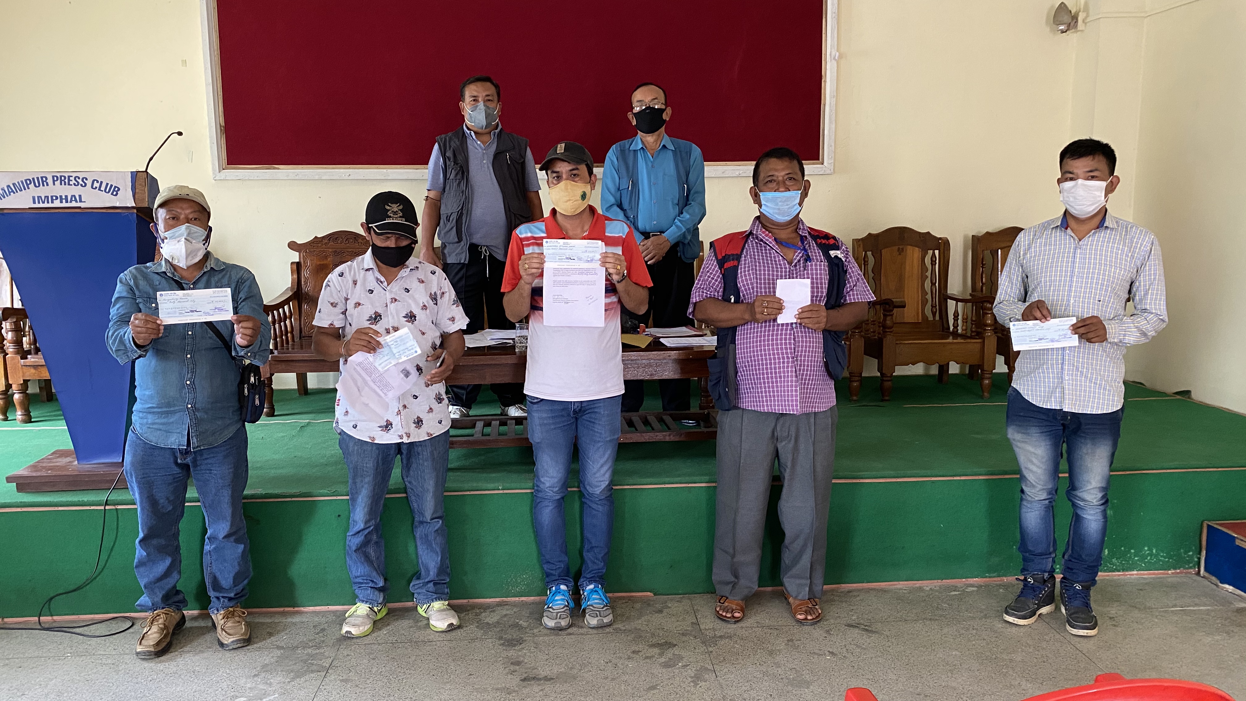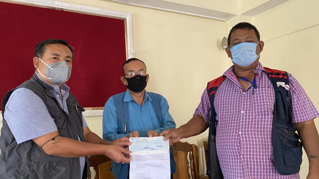 The distribution of the phase – 1 of the assistance was carried out following the recommendations of the Medical Board of the Foundation, comprising representatives from three reputed hospitals, namely, Dr A Santa Singh, director RIMS, Dr Kh. Lokeshwar Singh and Dr. O. Guneshwar Singh of JNIMS and Shija Hospital’s managing director, Dr Kh. Palin. The first phase of assistance was eligible for medical treatment expenses incurred between 1st April to 31st September 2020 only. Leihaothabam Ajitkumar Sharma of ISTV, Pouguilung Kamei of Peoples Chronicle, Lairenlakpam Maipak Singh of Poknapham were awarded financial assistance of Rs 30,000/- (thirty thousand only) each for their treatment expenses incurred on their wives’ medical condition. Wahengbam Kumarjit of ISTV received Rs 38,000/- (thirty-eight only) as assistance towards the treatment expenditure on his wife’s medical condition. Ayekpam Birjit Meitei of Kanglapao who was recommended assistance of Rs 20,000/- by the Medical Board for his ulcer treatment was given Rs 14,000/- (fourteen thousand) only as he was previously aided with Rs 6,000/- (six thousand) from the Immediate Medical Relief Fund of PWF handed over by AMWJU on an emergency basis.