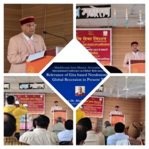 Professor Madan Mohan Goel, Former Vice Chancellor & Founder of the Needonomics School of Thought justified Gita-based ‘Needonomics’ (economics of needs) including needo-education for needo-employability and needo-entrepreneurship. He spoke today at the International Conference on Global Relevance of Gita by Matribhoomi Sewa Mission. His topic was “Relevance of Gita-based Needonomics for Global Recession in Present Times”.