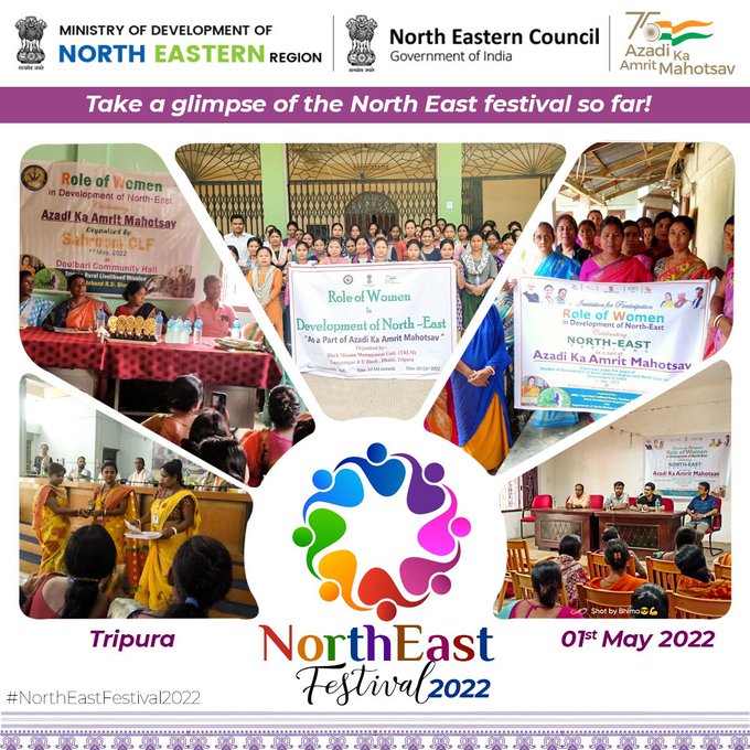 Tripura Rural Livelihood Mission R.D department and department of Social Welfare and Social Education Government of Tripura on 1st May has jointly organised “North East Festival as a part of Azadi Ka Amrut Mahotsav under the ageis of MoDONER, with the theme “Role of Women in development of North East.”