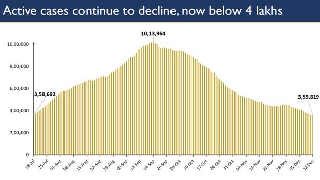 Covid Update | India’s Sustained decline of Active Caseload continues December 12, 2020 KRC TIMES Desk