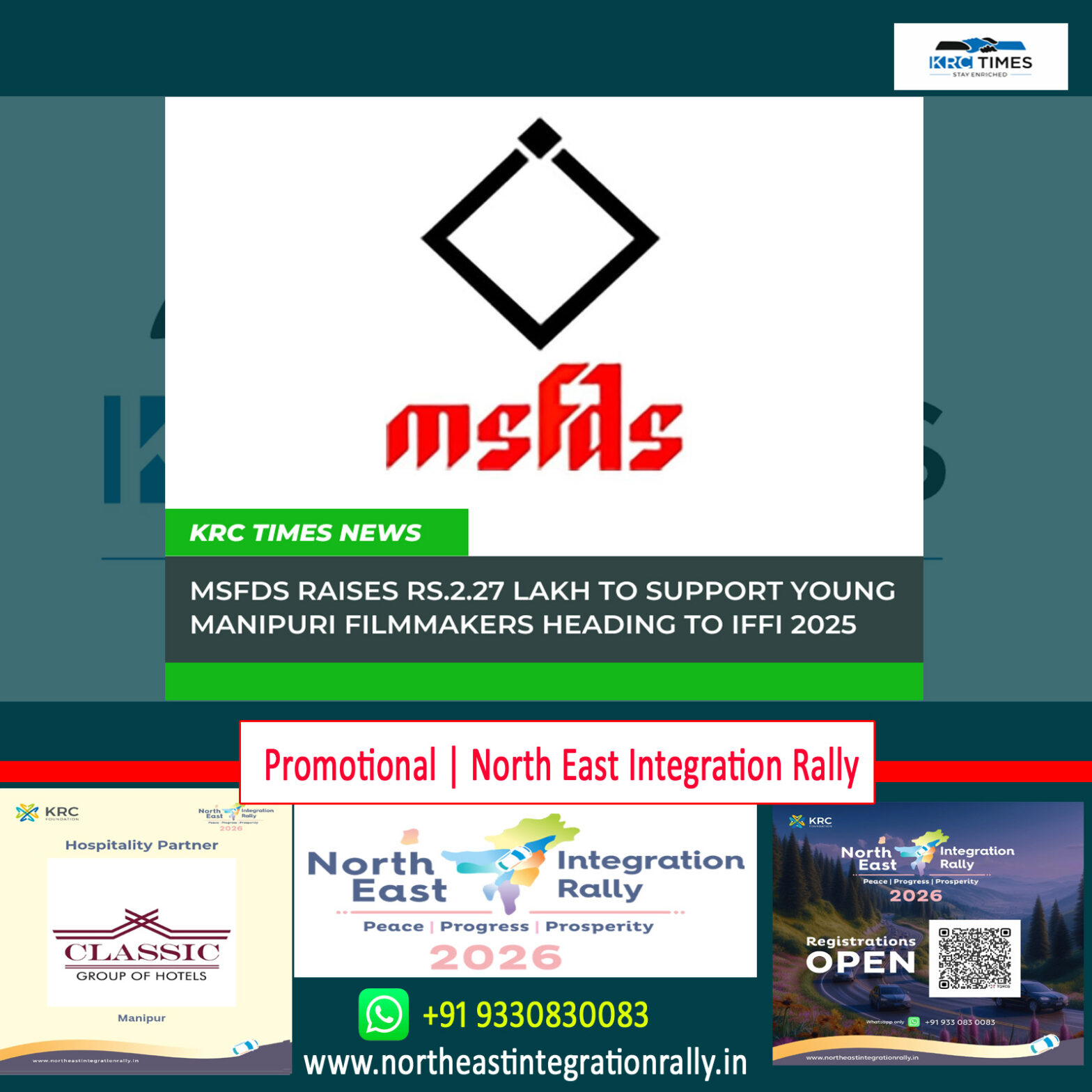 MSFDS raises Rs.2.27 lakh to support young Manipuri filmmakers heading to IFFI 2025 November 25, 2025 KRC TIMES Manipur Bureau