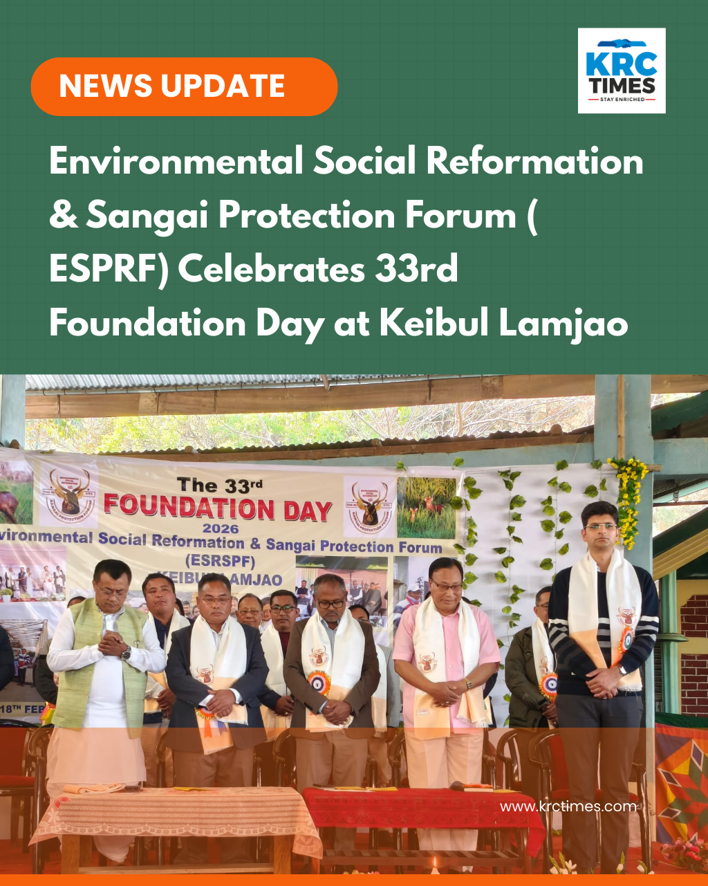Environmental Social Reformation & Sangai Protection Forum ( ESPRF) Celebrates 33rd Foundation Day at Keibul Lamjao February 18, 2026 Biswadeep Gupta