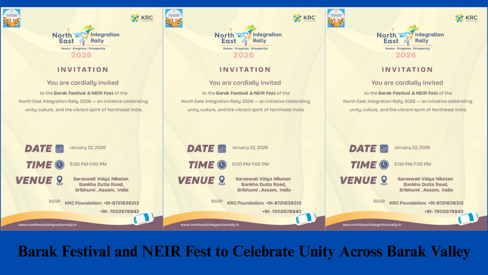 Barak Festival and NEIR Fest to Celebrate Unity Across Barak Valley January 21, 2026 North East Integration Rally