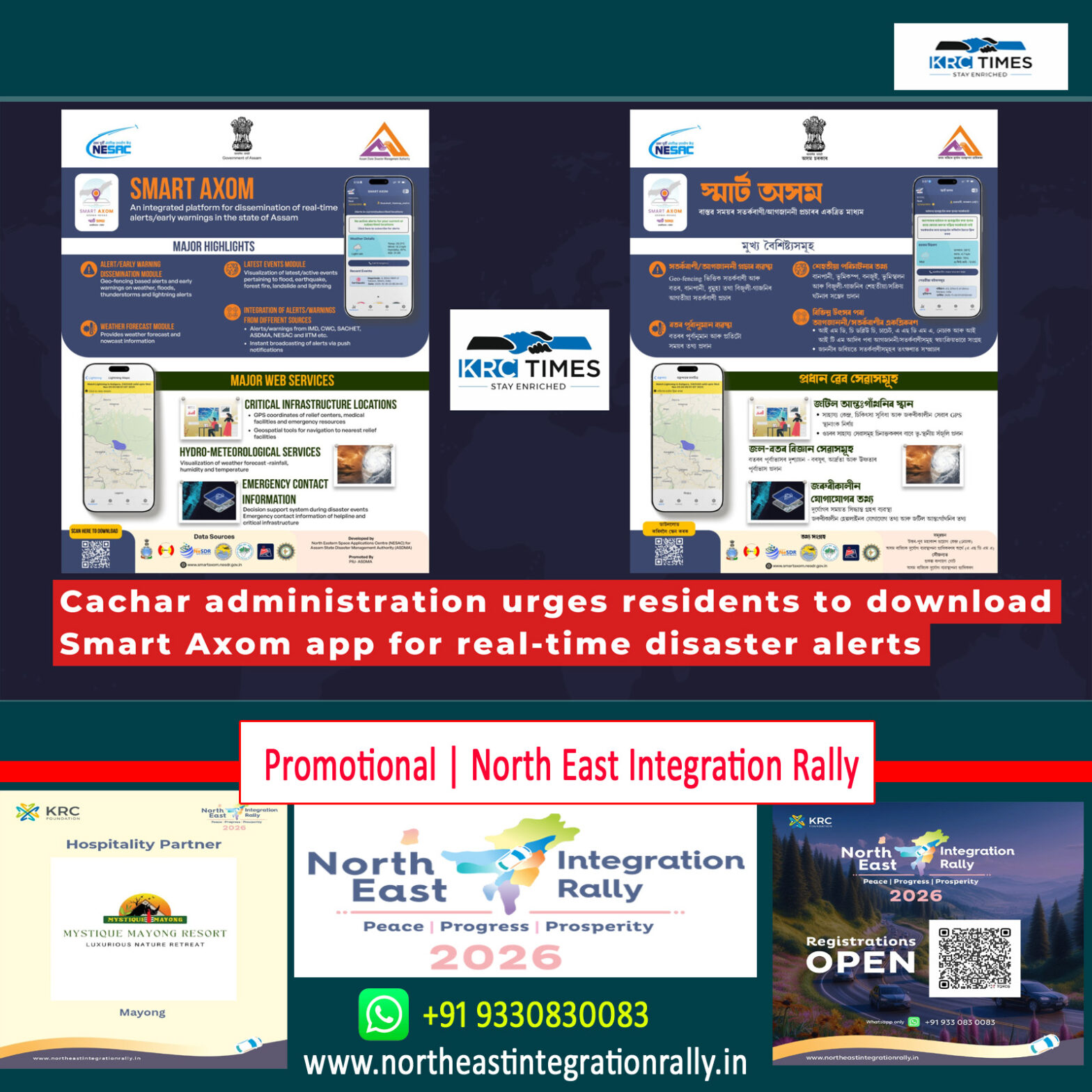 Cachar administration urges residents to download Smart Axom app for real-time disaster alerts November 14, 2025 KRC TIMES Barak Valley Bureau