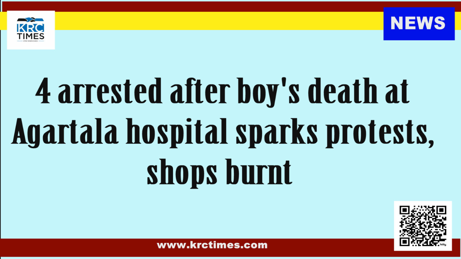 4 arrested after boy’s death at Agartala hospital sparks protests, shops burnt July 13, 2024 KRC TIMES NE Desk